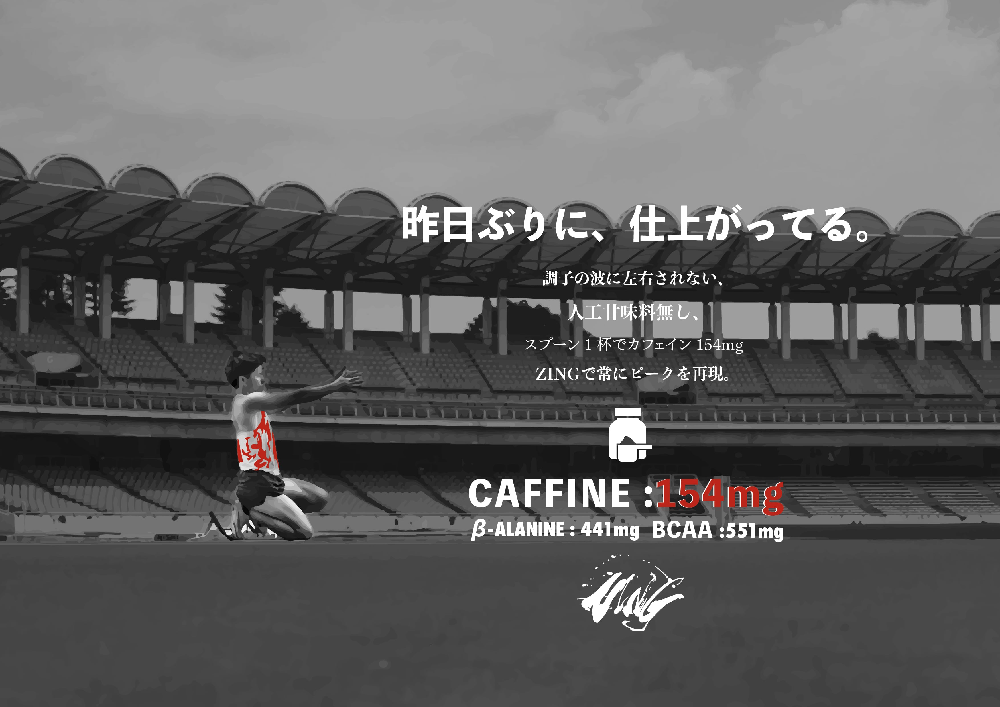 ZINGには1回あたり154mgの天然由来のカフェインが含まれています。適切に摂取することで、練習や試合前の集中力サポートに役立ててください!
